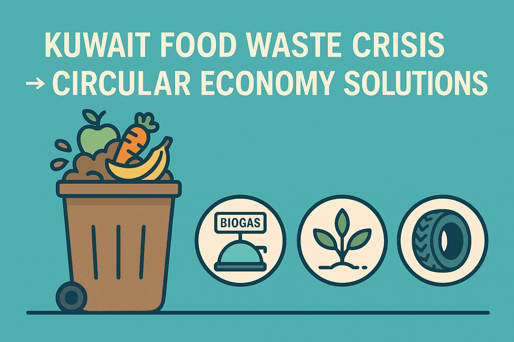 To break this cycle, Kuwait can adopt circular economy strategies that combine food waste management with desert greening, tire recycling, and renewable energy production.